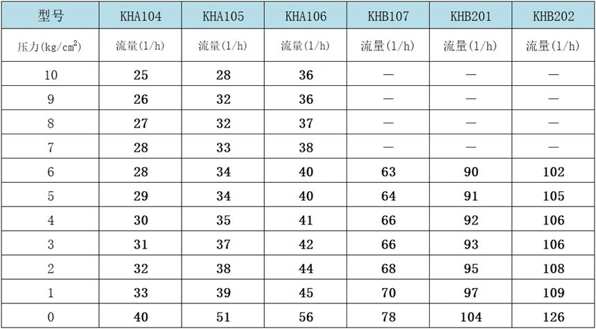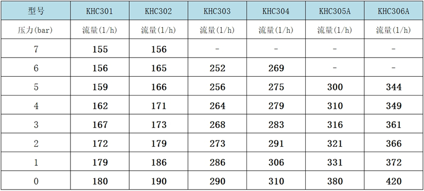 2、以上參數,是使用常溫零壓力清水測試值;